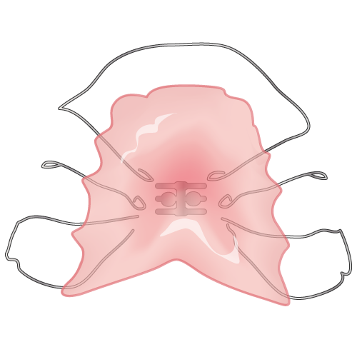 入れ歯のような形の装置を毎日決められた時間に装着し、顎の成長を促して歯が並ぶスペースを作る方法です。装置に埋め込まれたネジを少しずつ調整して使います。